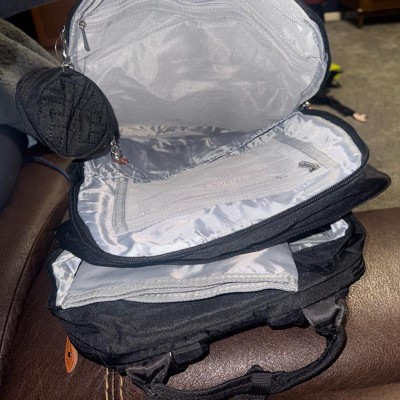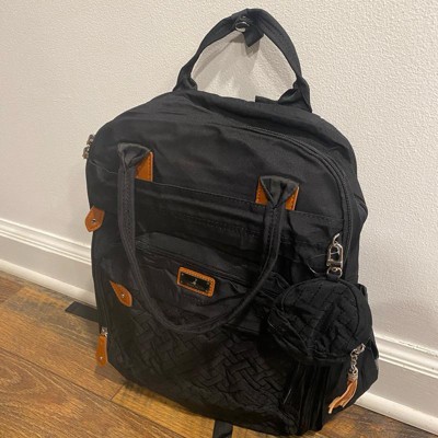 [This review was collected as part of a promotion.] I’ve been using this bag for my 2 kiddos and it’s been great. It’s smaller and more lightweight than other diaper bags I’ve tried but the many pockets and compartments make it very functional. It can easily expand to accommodate more if needed for multiple kids or longer adventure days. I really appreciate the multiple bottle pockets — we are past the bottle stage so use them for water bottles — there’s space for kids water bottles and for bigger adult ones. What I don’t love about it is the leather zipper pulls — they are bigger than necessary and distract from the look of the bag. The straps are lightly padded and offer a lot of adjustments — I had no pain after wearing it all day at the zoo. Overall, this bag is ideal for organized parents who like a pocket / place for everything. If you’re a “dump it and dig” kind of person, this probably isn’t for you since the main compartment isn’t terribly roomy.