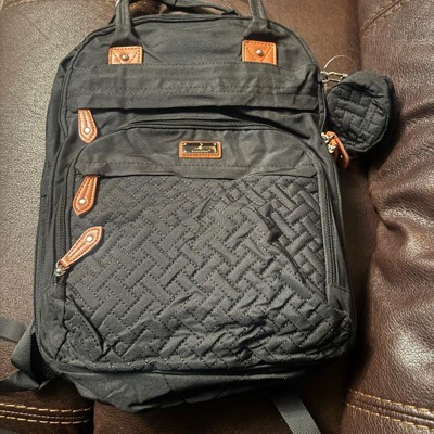 [This review was collected as part of a promotion.] This bag is appealing to the eye and seems sturdy. I have yet to use it but it appears to be a good quality. Fabric seems decently thick and sort of "quilted". There are many compartments which is nice to separate various items. It could have a tad more space given the size of the bag is labeled as "large".