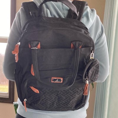 [This review was collected as part of a promotion.] I’ve been using this bag for my 2 kiddos and it’s been great. It’s smaller and more lightweight than other diaper bags I’ve tried but the many pockets and compartments make it very functional. It can easily expand to accommodate more if needed for multiple kids or longer adventure days. I really appreciate the multiple bottle pockets — we are past the bottle stage so use them for water bottles — there’s space for kids water bottles and for bigger adult ones. What I don’t love about it is the leather zipper pulls — they are bigger than necessary and distract from the look of the bag. The straps are lightly padded and offer a lot of adjustments — I had no pain after wearing it all day at the zoo. Overall, this bag is ideal for organized parents who like a pocket / place for everything. If you’re a “dump it and dig” kind of person, this probably isn’t for you since the main compartment isn’t terribly roomy.