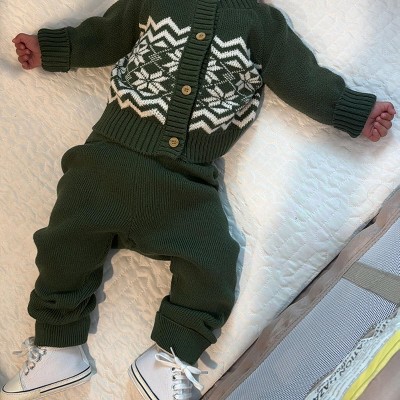 Wrap your little one in festive charm with this Christmas Holiday 2-Piece Fair Isle Sweater and Pants Set from Cloud Island™. This baby jacquard-knit outfit set includes a long-sleeve cardigan sweater with a button-down closure adorned with a classic Fair Isle pattern and matching sweater pants for a coordinated look. The midweight cotton-acrylic fabric blend helps keep them cozy all day long, while the full elastic waistband on the pants provides a snug fit.
