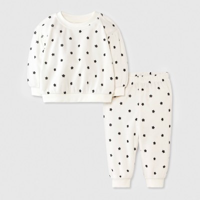 Keep your little one cozy and ready for daily adventures with this 2-Piece Faux-Shearling Teddy Bear Sweatshirt and Jogger Pants Set from Cat & Jack™. This two-piece outfit set includes a faux-shearling sweatshirt with a teddy bear graphic on the front plus matching jogger pants for a cute, coordinated look. The faux-fur outfit set is crafted from recycled polyester fabric for breathable comfort, while ribbed cuffs and a ribbed hem offer a snug fit. Plus, the joggers feature an elastic waistband for easy pull-on wear.