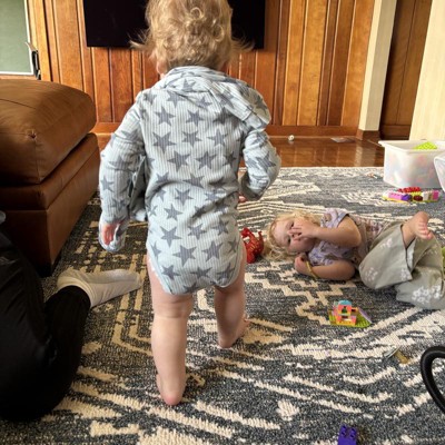 [This review was collected as part of a promotion.] This is the cloud island blue stars two piece ribbed set in size 24 months. I would say it runs large but overall the fit is just wonky. I wouldn’t recommend this set. The bodysuit almost runs small or true to size but then the pants are baggy but too short. The material is soft but sturdy for an active child. The pattern is cute and the price is right but I wouldn’t recommend since the fit is off. I received an incentive to write this review.