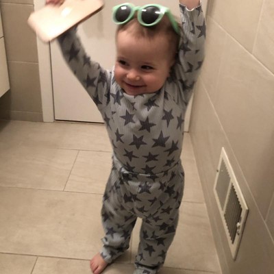 Dress your baby in adorable style with this 2-Piece Stars Wide Ribbed Top & Bottom Set from Cloud Island™. The baby outfit set is made with 100% cotton ribbed fabric with a single-layered construction for soft and breathable comfort. This set includes a long-sleeve bodysuit and pull-on pants, both covered with stars print on a wide ribbed backdrop for a cute look. The bodysuit has lap shoulders and crotch snaps for easy dressing and diaper changing, while the full elastic waistband helps keep the pants in place.