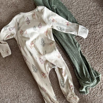 [This review was collected as part of a promotion.] These are so soft and the colors are even better in person. They are unisex and can be worn as pajamas or outfits. My favorites things about them are the cuffs that fold over little hands so they don’t scratch themselves and that the zipper goes both ways for easy diaper changing. The Pooh design is wintry so it can be worn past Christmas!