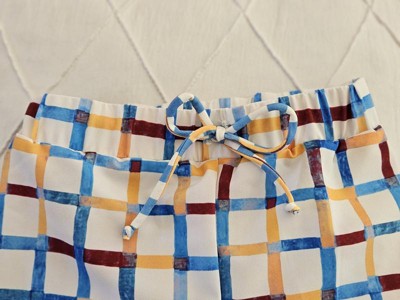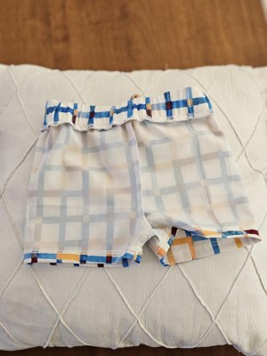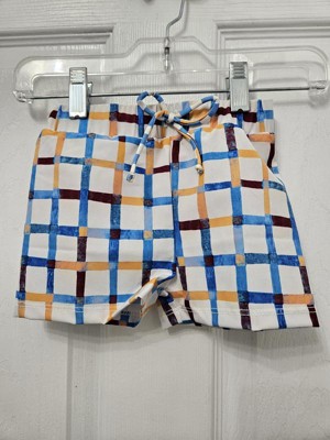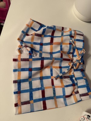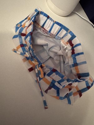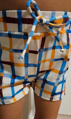 The colorful patterned swim shorts for our toddler are certainly vibrant. Made from recycled polyester and spandex, the solid white shorts feature colorful gingham check stripes, giving them a modern swimwear style. The drawstring is perfect for keeping the shorts at waist height and ensuring comfort. My little guy loves the fit, color tone, and overall comfort. The colorful gingham check pattern adds such a playful, fresh touch.