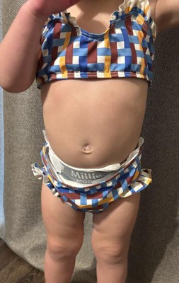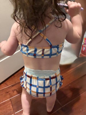 Now your mini can match you with MIGA Swimwear's toddler swimwear. For park fountain outings to sunny beach days, this charming bikini set with ruffles is the perfect sidekick. Made with recycled polyester and UPF 50+ fabrics, this printed bikini set with crisscross straps will keep your mini shielded and fashionable all summer long.