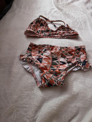 Made in the USA printed bikini set for girls in red geometric color