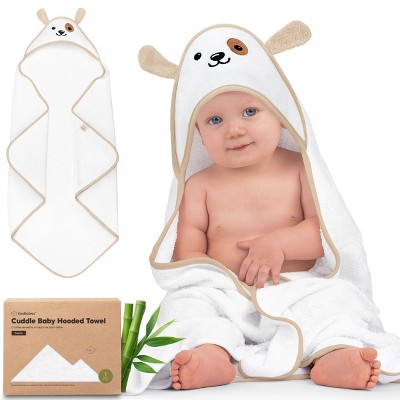 - Soft white hooded terrycloth robe featuring pretty organza-trimmed sleeves, a precious princess crown applique on the hood, tied with a princess pink satin ribbon