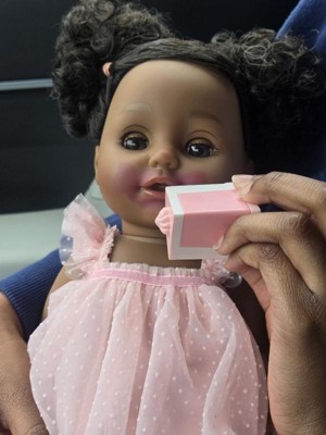 - WIPE FACE CLEAN: To "clean" up doll's face, dip the included napkin in warm water and wipe doll's mouth and cheeks to remove the color change.