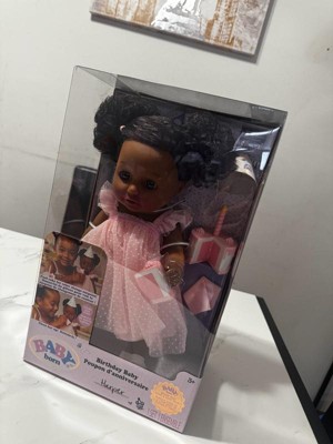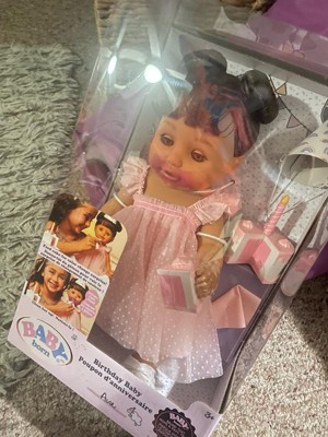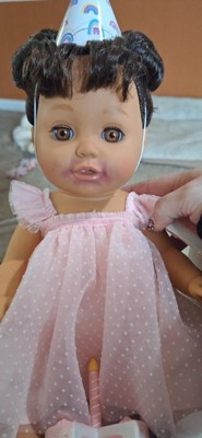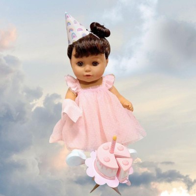 - IT'S TIME TO CELEBRATE: Birthdays are for everyone, even your baby doll! The Birthday Doll comes dressed for the party with a festive pink mesh dress with flocked dots and white shoes.