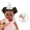 Birthdays are for everyone, including your baby doll! The BABY born Birthday Doll is dressed for the party in a festive pink dress with matching bows in her hair. Feed her cake and watch her face go from "clean" to "messy" just like a real baby! To reveal the color change, simply chill the cake slice in the freezer for 30 minutes, then press it to her lips and cheeks—it's magic in action! When the party's over, dip the included cloth napkin in warm water to wipe her face clean. After a day of festivities, your little one can lay her down for a nap and watch her eyes gently close. With beautiful rooted hair styled in adorable top knots, this doll is sure to delight. For over 30 years, BABY born has been the trusted name in nurturing dolls, encouraging empathy and imaginative play with their inclusive, realistic, and premium-quality designs. Includes baby doll, party dress, undergarment, shoes, toy cake and cake slice, cloth napkin, party hat and cake stand. Perfect for girls and boys ages 3 years old and up. Available in 3 different skin tones and eye colors.