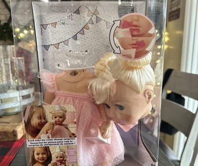 - FEED HER CAKE FOR COLOR CHANGE SURPRISE: Baby’s face becomes "messy" when you feed her cake, just like a real baby would! To trigger the color change, simply place the cake slice in the freezer for at least 30 minutes. Once it's cold, press the cake slice to doll's lips and cheeks and watch as they change color.