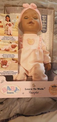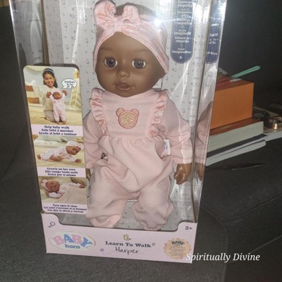 - GET READY FOR ENDLESS FUN: BABY born Learn to Walk Baby doll has 6 lifelike features: crawling, first steps, arm & leg movements, giggles, sleepy sounds, and open/close eyes. Available in 3 different skin tones and eye colors.