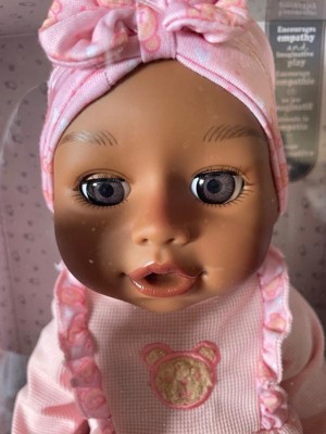 - LIFELIKE BABY SOUNDS: She giggles when her tummy button is pressed, makes yawning and sleeping sounds when rocked, and adorable baby sounds when she moves her arms and legs.