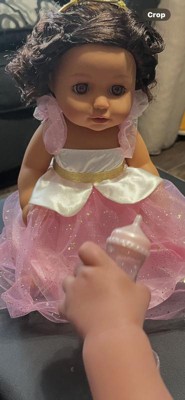 [This review was collected as part of a promotion.] I received this toy for free, thank you @influenster. This baby doll is super pretty, interacts by opening and closing his eyes. I love how she is dressed, i love pink 💕. Her body is cuddle and soft, comes with her shoes and a milk bottle super cute, and the super beautiful crown, a real princess,a perfect gift for the princesses of the home.