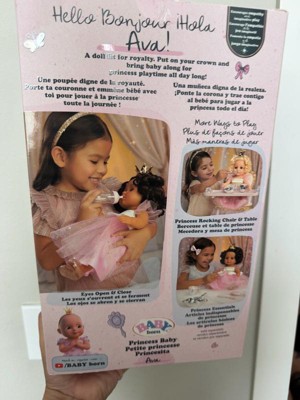 [This review was collected as part of a promotion.] My little girl is absolutely smitten with Baby Born Princess Baby Doll Ava! This adorable doll is so lifelike and sweet, with its soft yet well made body and beautiful princess outfit. The accessories, like the crown and bottle, add to the imaginative play. Doll's features and accessories are so realistic and fosters caring and nurturing skills. Is a perfect gift for little girls who loves dolls