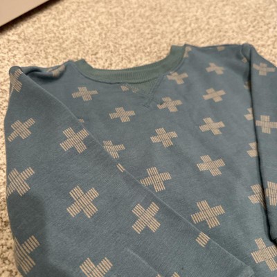 Get your baby ready for cool outings in a coordinated look with this 2-Piece Plus Sign Graphic Jogger Pants Set from Cloud Island™. This two-piece outfit set features a long-sleeve sweatshirt and a pair of elastic-waistband jogger pants with an allover plus sign print, perfect for a cute look. Plus, the side pockets on the pants add functional detail to their look. Crafted from a blend of cotton, recycled cotton, and modal fabric, the sweatshirt and jogger pants set provides your little one with comfortable wear all day.