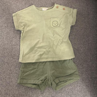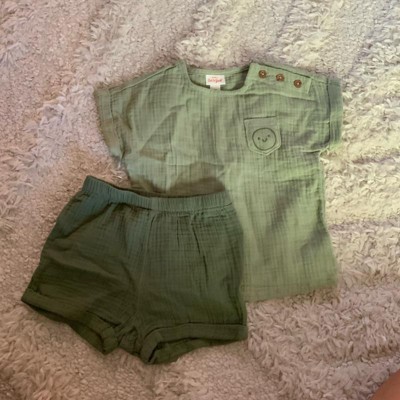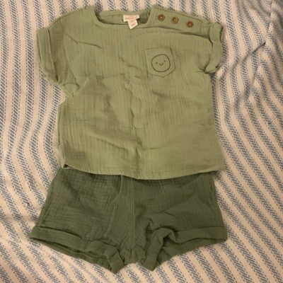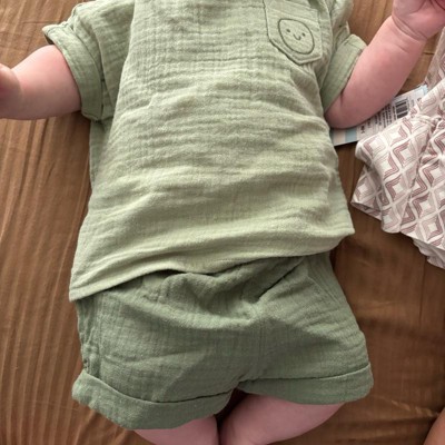 Baby Boys' 2pc Smiley Embroidered Pocket Gauze Shorts Set - Cat & Jack™ Green 0-3M