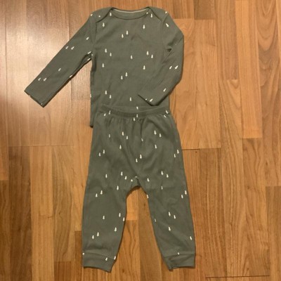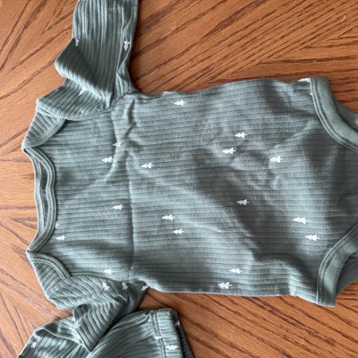 Whether it's time for an outing with family or fun time at home, dress up your little one in a cute look with the pieces from the 2-Piece Stars Wide Ribbed Set from Cloud Island™. This baby green clothing set includes a long-sleeve bodysuit and a pair of jogger pants, both featuring allover trees print and a wide ribbed pattern. The top features lap shoulders and crotch snaps for easy dressing and diaper changing, while the bottom has a full elastic waistband for a stay-put fit. Made of 100% cotton fabric, this ribbed clothing set feels so soft and comfortable for all-day wear.