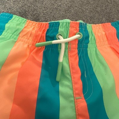 Bring cool, comfy flair to their sunny-day activities with these Striped Swim Shorts from Cat & Jack™. Boasting a colorful stripe pattern, these mid-rise swim shorts are made from 100% recycled polyester twill fabric with lining to offer complete comfort in or out of the water. A full elastic waistband with a front drawstring provides a snug fit, and the UPF 50+ rated material helps protect their skin from harmful UV rays.