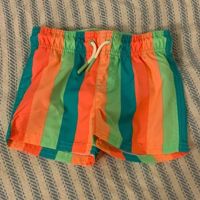 [This review was collected as part of a promotion.] These are cat and jack toddler boy swim trunks in size 12 months, which is perfect for my one year old son. I love the neon stripes and the fact they are vertical makes his short little baby legs appear longer. The bright colors are really fun for a tropical vacation to the beach. The liner is not very practical at this age, as we are still in a swim diaper. The sizing is true to size. I received an incentive to write this review.