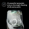 - Powerfully and precisely washes ALL breast pump parts, including flanges, shields, collection cups, valves/membranes and storage bottles