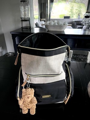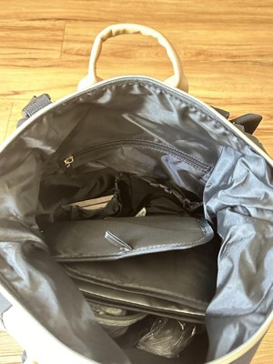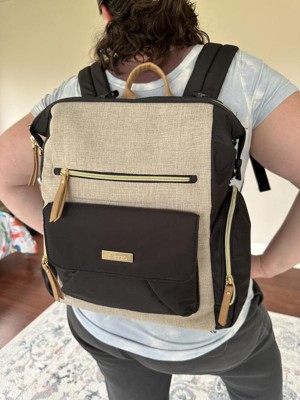 [This review was collected as part of a promotion.] I was given this diaper bag to try as part of the Stellar Product Testing Panel. Look, I love a good diaper bag backpack. I’ve used many. But this one was not the one for me. Pros: The style is there! It’s cute. The tan linen fabric on the front is nice! I really like the pockets on the front as well. There’s a zippered one and a nice magnetic flap one. The zippers glide smoothly. It has a handful of small pockets inside. It has an insulated bottle pocket. It has a changing pad. It has stroller straps. It’s a backpack, so the straps keep it out of the way and let me use both my arms for kids instead of bulky bags. Cons: The main one for me is that the inside is literally a deep, narrow, black hole. The inner lining is black, so it’s very hard to see in there. Once you do poke around, you’ll find 5 small-ish pockets around the walls, no divider or large pocket. So if you, for example, keep your diapers, wipes, and cream in a small pouch, there’s no pocket big enough to keep it out of the way. You’ll be pulling large items out to get to anything smaller. Another reason it’s hard to find things in there is that the top of the bag isn’t like a traditional backpack. It just zips straight across, which makes the opening rather awkward and narrow. And unless you snap down the corners every time they just poke out unattractively. Moving to the outside of the bag… obviously, it’s a boxy backpack. As far as boxy backpacks go, however, this one feels extra boxy and unergonomic while also not holding as much as it looks like it should. Lastly, I really don’t like how the stroller straps look. There’s no way to take them off or hide them anywhere that I can see. They’re stuck on the top of the shoulder straps, so when you’re wearing it, the strap and buckle just sort of bounce around and tickle your neck. Weird. Overall, it has some great qualities. But the not-so-great qualities made it a no for me.
