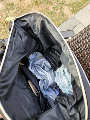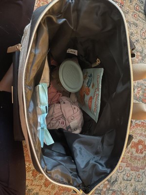 [This review was collected as part of a promotion.] I received this diaper bag to try as part of the Stellar Product Testing Panel and the first thing I noticed about it was how pretty it was. It didn't look like a diaper bag at all and was very stylish. It was also incredibly light weight which originally made me concerned whether or not it would hold up but it's held up great! I'll outline some pros and cons below. Pros: -Beautiful bag -The insulated side pocket is wider than other bags, which allows me to fit my cups that have handles, along with extra snacks. -It fits much more than expected given how light the bag is Cons: -Only one of the side pockets is insulated -There is no dedicated pocket for the changing pad and it's difficult to find a place for it when the bag is full. -The inside pockets are toward the bottom of the bag, but it means that trying to get diapers or wipes when the bag is full is difficult because you have to reach under all your things. Overall, I would say that if you're looking for a stylish bag that can carry the things you need, this is a great bag. If you're looking for a bag that has every single thing you need as easily accessible as possible, it has a little room for improvement.