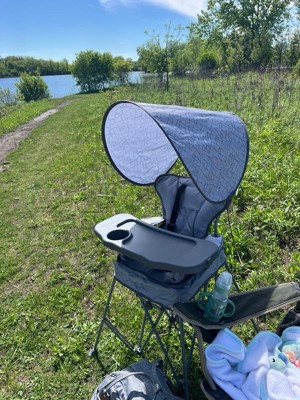 [This review was collected as part of a promotion.] This is the thing we didn't know we needed. It was absolutely perfect for our fishing trip. Our 9 month old LOVED it. He ate snacks and played with toys on the tray. The canopy is such a nice add on. It was pretty windy but the chair is super sturdy. I honestly can't say anything bad about it.