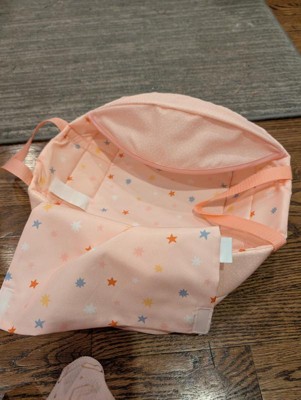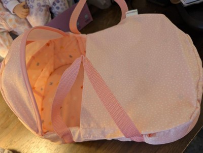 I received this product for free from the Hey, Bullseye™ sampling program in exchange for my honest review. This is a cute bassinet for carrying a baby doll or two. It has some structure but I wish it had a little more. It kind of collapses on itself if you don't have the sides velcroed. It took a minute for me to find the Velcro strips that connect the top to the sides, so look for them. The top shade does have a bit of structure to it, which is nice. We were able to squeeze the twin baby dolls in here, which was nice.