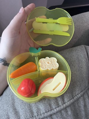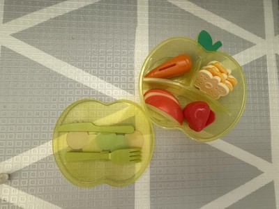 - Includes play crackers, apple slices, strawberries halves, carrot, cheese slices, fork, knife and more