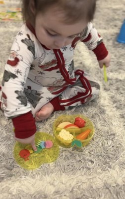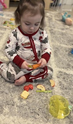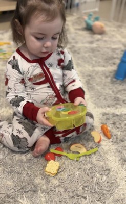 Your little one will love pretending to feed a baby of their own with the Baby Doll Snack Play Set from Gigglescape™. This play set include play crackers, strawberries halves, a carrot, cheese slices, apple slices, fork, knife, and a container to provide countless hours of fun at home. Great for use with any baby doll, this set is made from plastic and recommended for toddlers ages two and up.