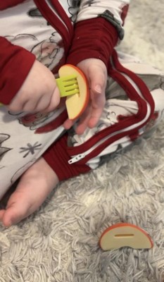 This is a fun toy. My daughter likes pretending to make cracker and cheese stacks, picking the apples and carrot with the fork, and cutting the strawberry with the knife. It’s a cute set.