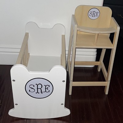 Baby Doll Wooden High Chair - Gigglescape™: Fits All Doll Sizes, 2-Piece Set, Wood Material, Baby & Infant Theme