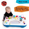 - Removable table legs to use tabletop on the floor for tummy time or sit and play, and a removeable dry erase art panel; sibling-friendly and big enough for 2 to play together so it's fun for all