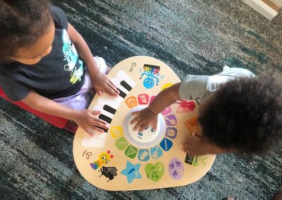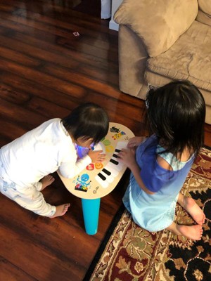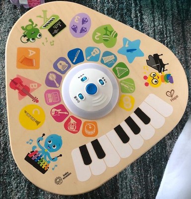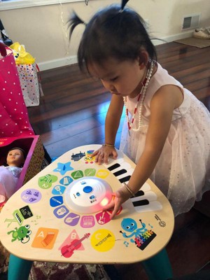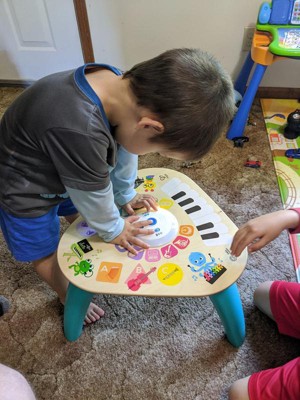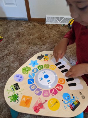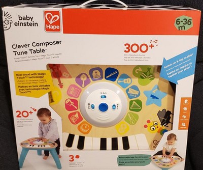 Like the limitless possibilities of music itself, the Clever Composer Tune Table Magic Touch Activity Toy from Baby Einstein offers open-ended musical experiences for your child. The wooden activity center features award-winning Magic Touch technology to put music at babys fingertips. Simply tap the wooden surface to experiment with sound. The 22 instrument options and 3 modes of play encourage your baby to explore and create his own musical compositions. In Learn mode, your little one can discover instrument names, colors and more. Silly mode activates sound effects galore, so the playtime never gets dull. Remove the table legs to create a floor toy for younger babies or little brothers and sisters. With so many ways to play, this musical station will be a family favorite for years to come!