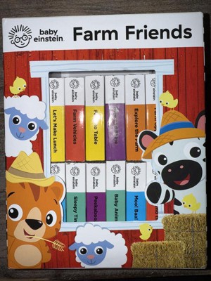 Join your Baby Einstein friends on the farm and share hours of early learning fun with your little one! Packed with 12 sturdy board books that are just the right size for little hands, this take-along library comes in a carrying case with a plastic handle for easy transport and storage. Babies and toddlers will love exploring concepts including farm animals, sounds, foods, vehicles, and more!