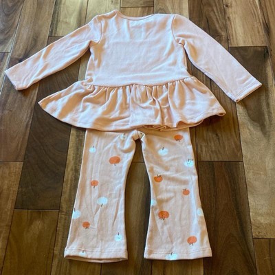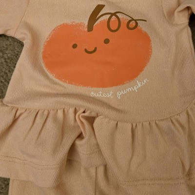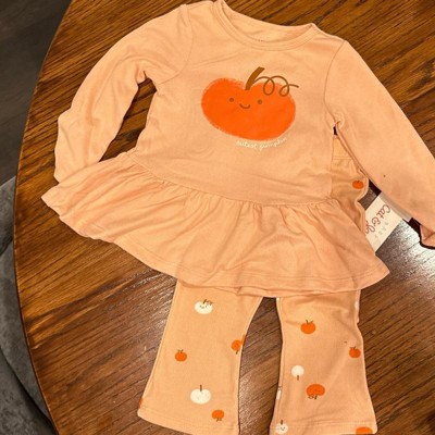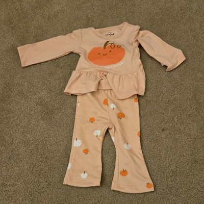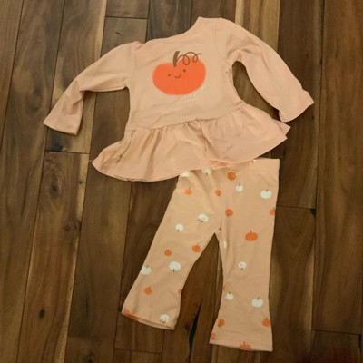 Baby Girls' 2pc Halloween Pumpkin Peplum Flared Leggings Set - Cat & Jack™ Peach Orange 24M