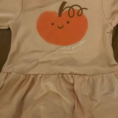 Your baby will be ready to bring a smile to everyone's face by wearing the 2-Piece Smiling Pumpkin Peplum Flared Leggings Set from Cat & Jack™. This two-piece outfit set for babies includes a peplum top featuring a pumpkin image and the message "Cutest Pumpkin." It accompanies a pair of leggings featuring an allover pumpkin print, making the set great for harvest, Halloween, and beyond. The bottom comes in an ankle-length style with a full elastic waistband for a stay-put fit. Tailored from recycled polyester fabric with spandex, this smiling pumpkin outfit set allows them to move and stretch comfortably.