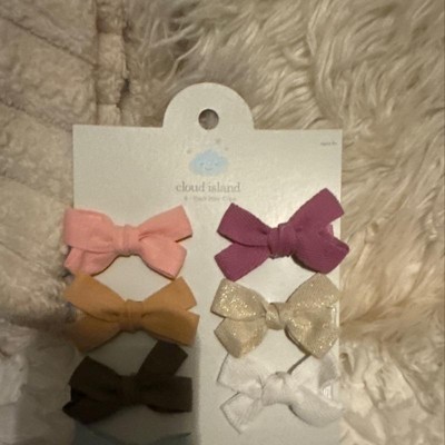 Add oodles of cuteness to your baby's look with this 8-Pack of Hair Clips from Cloud Island™. This pack includes six bow hair clips, each made from twill fabric in an assortment of colors for a variety of options to match with their different adorable outfits Designed with a spring clip draped in soft woven fabric for easy sliding through their hair, these hair clips are accented with a bow detail at the top for an extra-charming touchEasy to Use clips, simply grab a section of hair you want to clip in place, pinch the end of the clip, slip the bottom portion of the clip underneath hair and releaseCloud Island™. Designed with love Made without compromise