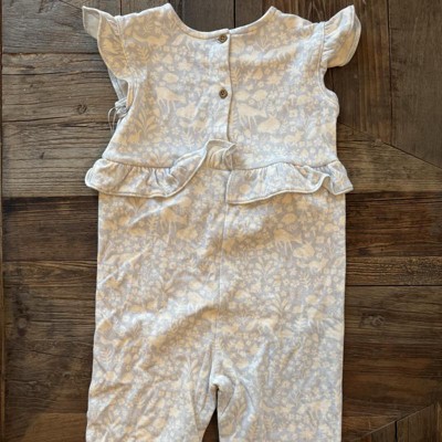 [This review was collected as part of a promotion.] This is the baby girl long leg floral romper by Cloud Island. It is a lightweight material and fits perfectly. We are currently wearing mostly 18M but sizing up to 24M, I got this in the 24M and it has plenty of room grow and to add a shirt underneath for wearing in the colder weather. The length in the torso is good as this can be a problem as many of the one piece jumpsuits or rompers are too short. This is easy to get on and off as it has buttons at the back of the neck and snaps at the legs. The pattern is so cute it has deer, bunnies and foxes basically animals in the forest. It will be perfect this winter with a long sleeve shirt it will also be perfect in the spring and summer and so cute! I received an incentive to write this review.