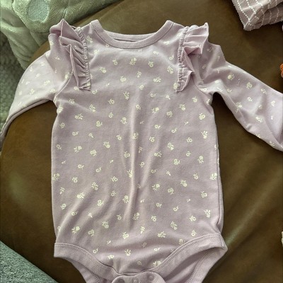 Dress up your baby in adorable style in this Ruffle Bodysuit from Cat & Jack™. Made from a cotton, recycled polyester, and spandex-blend fabric, this long-sleeve bodysuit features a tagless design and offers all-day cozy comfort. Best of all, it's designed with crotch snaps to make diaper changes a breeze. Adorned with allover tiny icons, it features ruffle accents on the sleeves for added flair.
