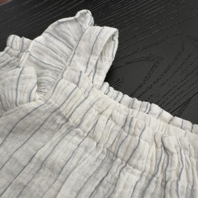 Blue striped cream gauze romper for toddlers
