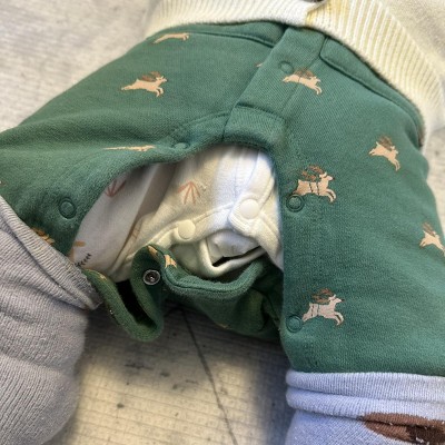 Snaps in crotch will not stay closed. Tried a bigger size to see if it helps but not at all. It’s always just gaping open when my baby sits or squats. So sad because the print and style is darling, hope they improve this for next year!