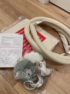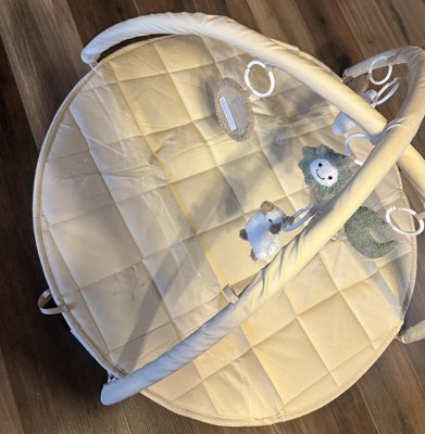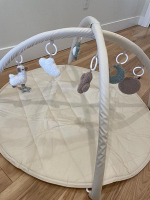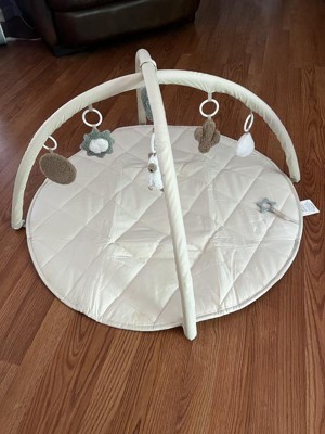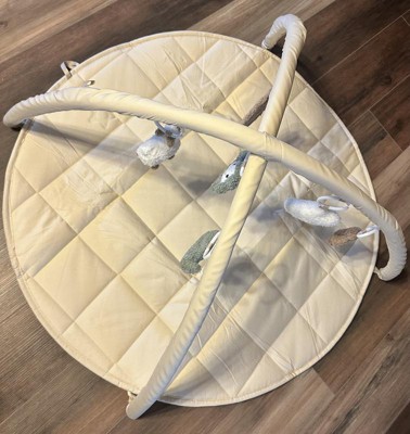 This baby play gym is so cute! Very modern, simple color scheme, very soft, AND easy to assemble! The little toys that come with it are so soft and cute, and detachable for a sensory experience!! This is an easy toy to travel with, or take apart and use just the bottom mat as a clean place to set your baby down for changing or tummy time. The ONLY thing that I’m petty about is the packaging - it came looking pretty cheap in the box. I think it’s so cute and wanted to give one to my cousin as a gift, but the packaging makes it look like it’s worth less than it costs. A shame, because it’s really cute and seems to be made well, too!