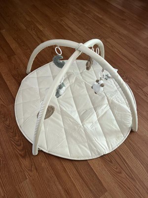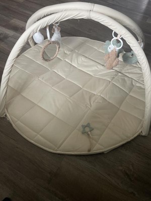This baby gym and tummy time mat is really nice. The mat is cushioned and is comfortable for the tummy time. Also the hanging toys are interactive for the baby. My baby is enjoying thos play gym a lot. It is good in size for the baby. Also the color beige is esthetic and gender neutral.