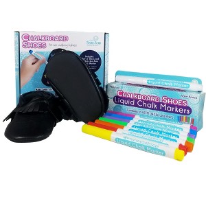 Baby Says quality baby shoes have a soft chalkboard outer sole that can be repeatedly decorated and personalized! Unique and stylish black moccasins are unisex and specially made for infants 0 - 12 months old. Show off what your baby might be "saying" to the world. Each pair of Baby Says Chalkboard Shoes comes with an 8-pack chalk maker set in assorted colors. Washes off easily with dish soap and water on a soft cloth or paper towel. Perfect for pregnancy announcements, gender reveals, holidays, sporting events, milestones... the possibilities are endless! Share your creations on social media using the hashtag #WhatdoesYOURbabysay