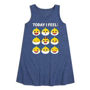 Baby Shark - Today I Feel - Toddler and Youth Girls A-line Dress - Sing along in style with Baby Shark graphic apparel, featuring vibrant and playful designs of Baby Shark, Mommy Shark, Daddy Shark, and the entire shark family. Each piece captures the fun, energy, and irresistible charm of the global hit song, bringing the colorful underwater world to life. Perfect for little fans and families who love to dance, sing, and make a splash with their favorite finned friends.