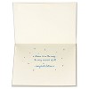 Celebrate one of life’s most magical and sweet moments – a new baby – with a whimsical baby shower card from Papyrus. This card features a storybook scene of a soft little bunny snuggled up in a cloud beside a sleepy full moon. Shining gold stars shine with dimensional paper attachments and hang down on a deep blue sky with scalloped sides. Perfect for a girl or boy, this card is a charming way to welcome a new baby to the world. Includes matching envelope and gold seal. Extra postage may be required.