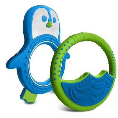 Baby Teething Toys for Newborn, Infants 0-6 Months Silicone Teethers for Babies 6-12 Months BPA Free Penguin - Blue & Green